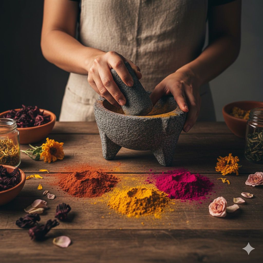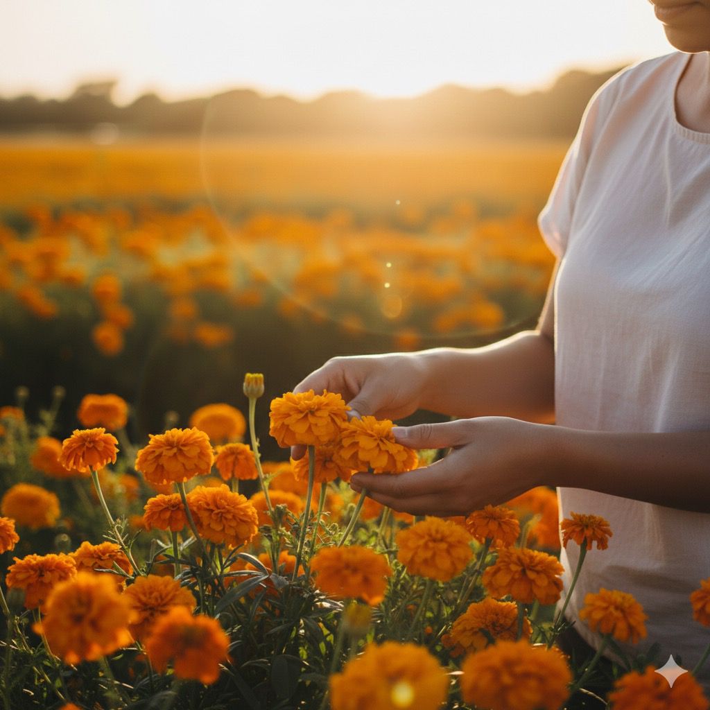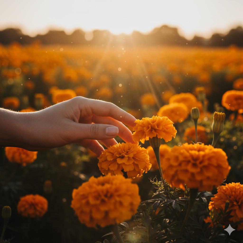 La "Flor de Veinte Pétalos" es un símbolo inconfundible en la cultura mexicana. Más allá de su vibrante color naranja y amarillo que nos inspira a crear los tonos dorados y cobrizos de Xochira, se le atribuyen propiedades antioxidantes y se utiliza tradicionalmente en pigmentos naturales. Representa la luz, el sol y la calidez, guiando nuestra paleta hacia la luminosidad.